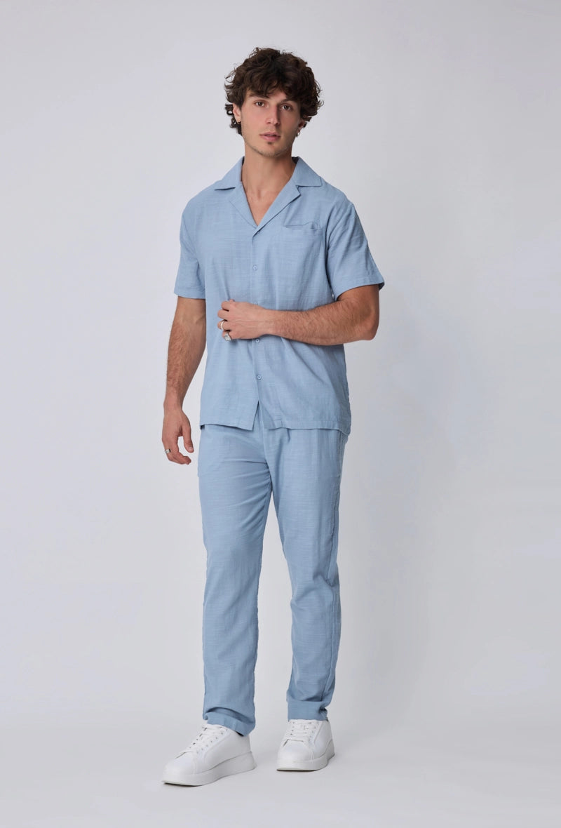 - Cet ensemble comprend une chemise à col cubain à manches courtes et un pantalon assorti