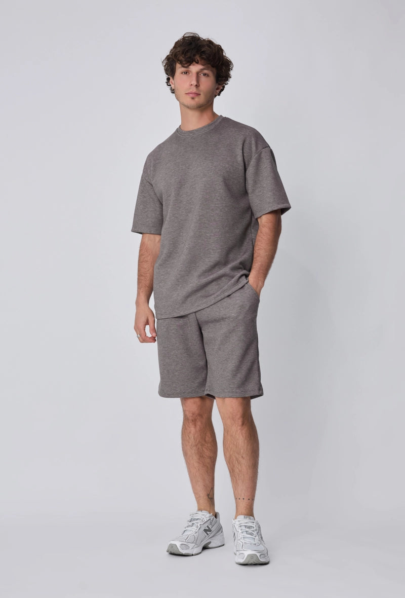 - Cet ensemble se compose d'un t-shirt à la coupe droite et d'un short assorti