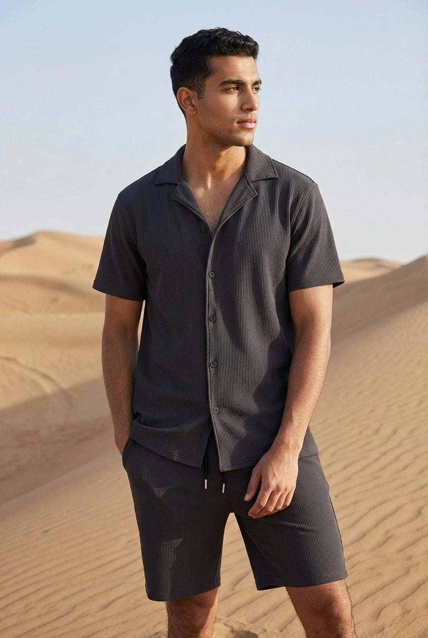 - La chemise présente une coupe décontractée et un tissu texturé
