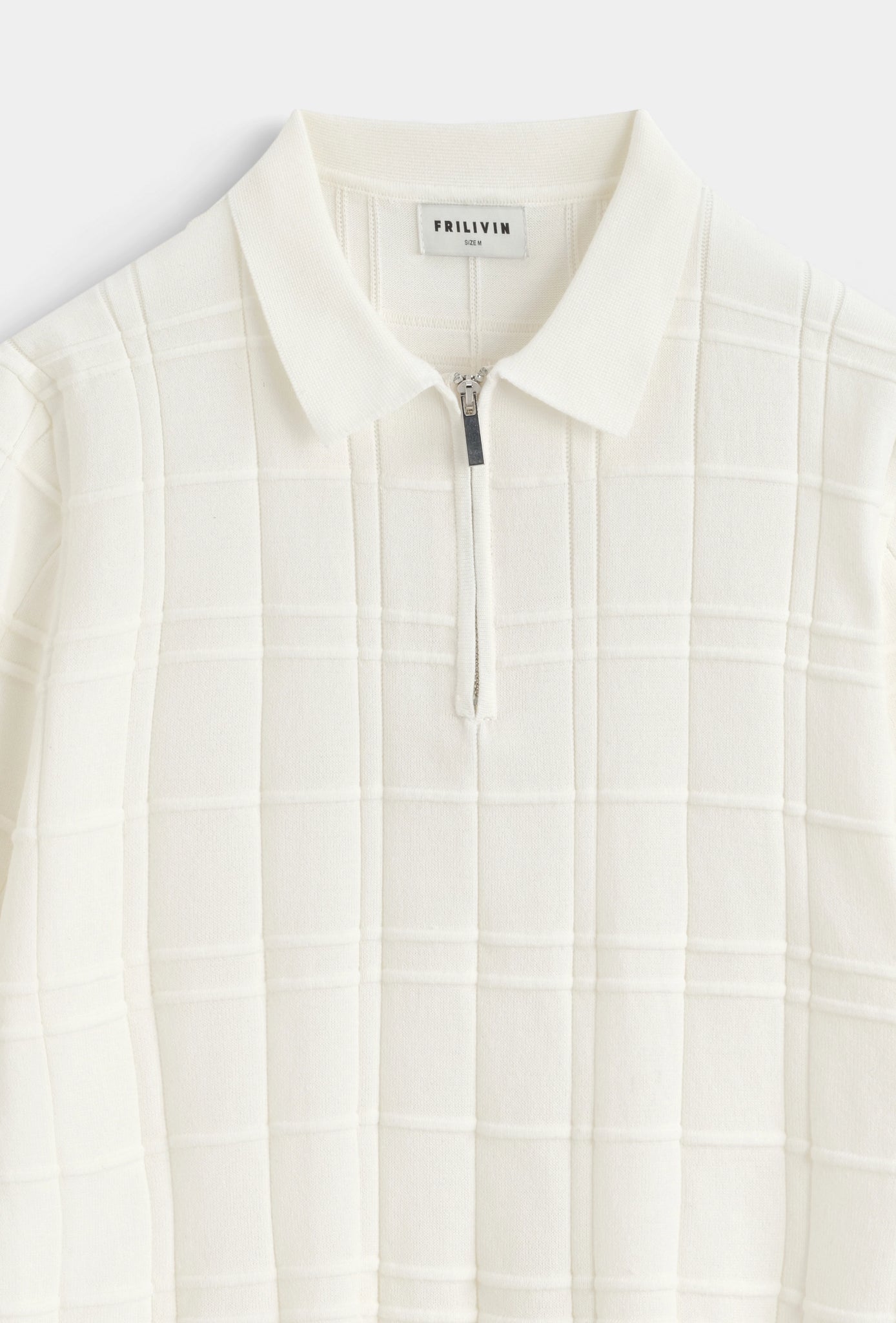 - Il s'agit d'un pull à col polo avec une texture subtilement travaillée